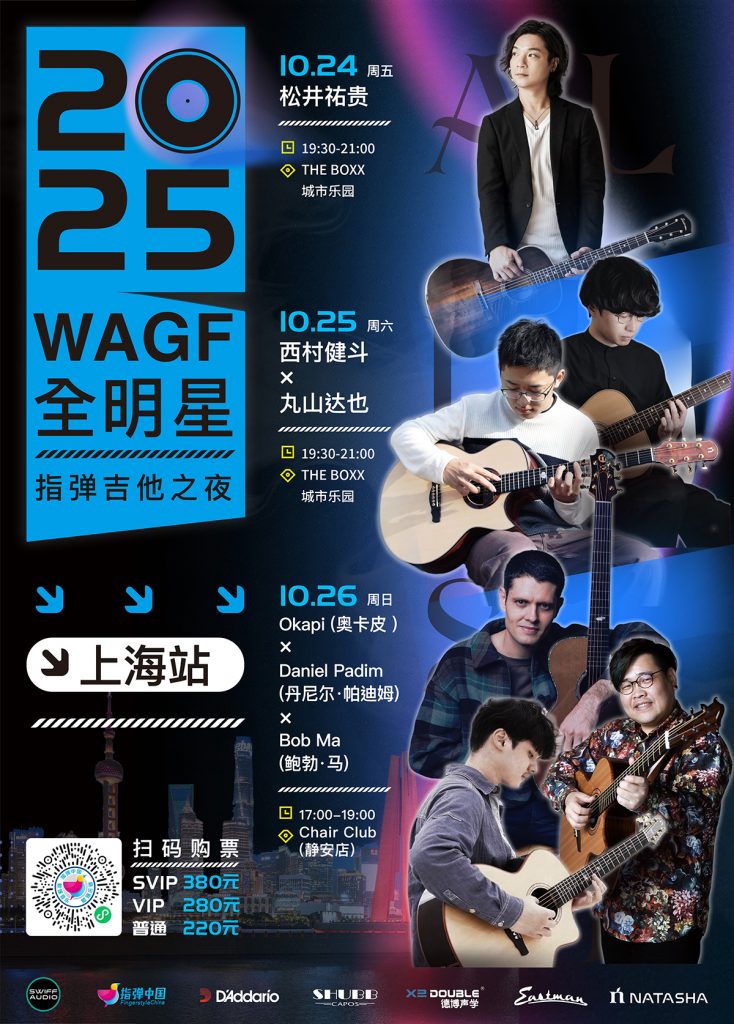 In 2025, Japanese fingerstyle competition champion Kento Nishimura teams up with rising star Tatsuya Maruyama for their first appearance in Shanghai, delivering a spectacular mid-show performance at the 2025 WAGF All-Star Night.